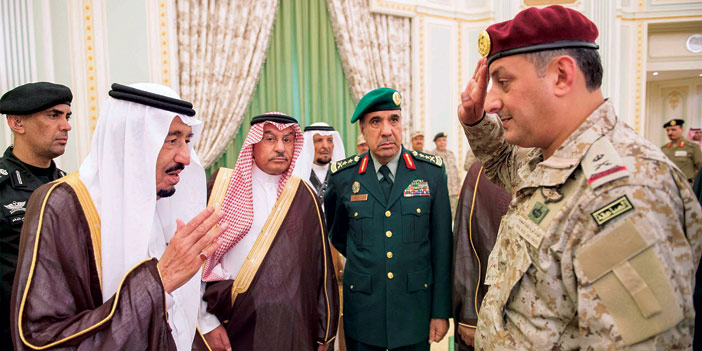 استقبل خادم الحرمين الشريفين الملك سلمان بن عبدالعزيز آل سعود القائد الأعلى لكافة القوات العسكرية -حفظه الله- في قصر اليمامة أمس، قادة وكبار ضباط وزارات الدفاع، والداخلية، والحرس الوطني ورئاستي الاستخبارات العامة والحرس الملكي، الذين قدموا للسلام عليه -رعاه الله-.