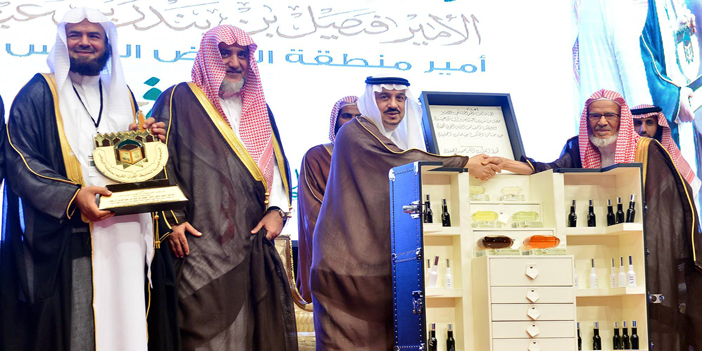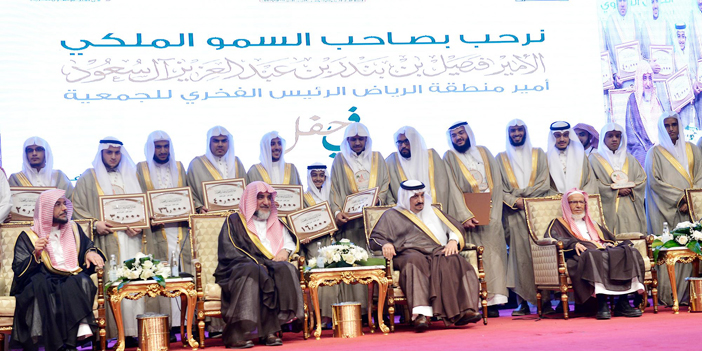 أكد صاحب السمو الملكي الأمير فيصل بن بندر بن عبدالعزيز أمير منطقة الرياض أن أعظم ما ينشغل به الإنسان ويفني فيه عمره خدمة هذا الكتاب العزيز تعلماً وتعليما وعملاً بالقول والفعل، حتى تتحقق الخيرية، وقال سموه خلال رعايته حفل تكريم الفائزين بجائزة خادم الحرمين الشريفين الملك سلمان بن عبدالعزيز لحفظ القرآن الكريم وتلاوته وتفسيره للبنين والبنات في دورتها السابعة عشرة, والحفل السنوي للجمعية مساء امس الأول في حضور وزير الشؤون الإسلامية والأوقاف والدعوة والإرشاد المشرف العام على المسابقة الشيخ صالح بن عبدالعزيز آل الشيخ، ورئيس الجمعية الشيخ سعد بن محمد آل فريان، ووكيل وزارة الشؤون الإسلامية الدكتور توفيق السديري وقيادات الجمعية الخيرية لتحفيظ القرآن الكريم بالرياض يشرفني أن أحتفي معكم بتكريم أبنائنا حفظة كتاب الله العظيم نيابة عن سيدي خادم الحرمين الشريفين الملك سلمان بن عبدالعزيز لافتا ما يُبارك ليلتنا, أن يكون حضورنا فيها من أجل هذا الكتاب الكريم، دستور ومنهج هذه البلاد المباركة، المطبق لتشريعاتها، والمصرف لشؤونها، والراسم لسياساتها الداخلية والخارجية, مع سنة النبي المصطفى صلى الله عليه وسلم، فهذه نعمة، ولله الحمد والمنة؛ فراية بلادنا التوحيد، ودستور لا نحيد عنه, ودولتنا على ذلك منذ قيامها على يد الإمام محمد بن سعود وناصره الشيخ محمد بن عبد الوهاب -رحمهما الله تعالى -, وخلفهما على هذا النهج الملك المؤسس فجدد لهذه الأمة شبابها وأرسى منطلقات نهضتها، وسار على عهده من بعده أبناؤه الملوك البررة، لتستمر مسيرة العطاء والنماء، ليكمل مشوارها ويبلغ بها مداها سيدي خادم الحرمين الشريفين الملك سلمان بن عبد العزيز الراعي والداعم لكل ما يُعنى بالقرآنِ الكريم، تلاوةً، وحفظاً، وتجويداً، وتفسيراً، فجهوده - أيده الله - واضح أثرها، على كل فرد من هذا البلد المعطاء، فدعمهِ لجمعية تحفيظ القرآن الكريم، على مدى (50) عامًا مؤسساً ورئيساً فخريا لها، لا يجزيه ولا يوفيه الشكر.