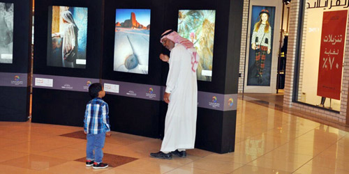 يطوف معرض «ألوان السعودية» المتنقل بزائريه في أنحاء الوطن وكأنه «مرشد سياحي»، يأخذك إلى قمم السودة الشاهقة فوق هام السحب، ويجلس معك على الكثبان الرملية في الصحارى الساحرة، ويسير معك على ضفاف البحر الأحمر، ويخوض معك مغامرة غوص في جزر فرسان، وإذا حل الليل شتاءً فهو جليسك في نفود حائل حول «شبة النار» في خيمة تختلط فيها رائحة القهوة بالسمر.
