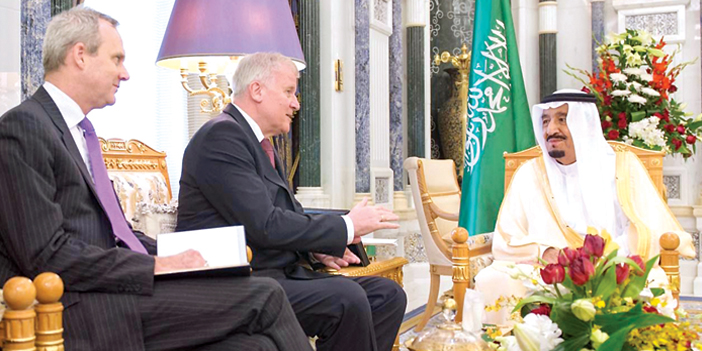 استقبل خادم الحرمين الشريفين الملك سلمان بن عبدالعزيز آل سعود -حفظه الله- في مكتبه بقصر اليمامة أمس، رئيس وزراء ولاية بافاريا الألمانية هورست سيهوفر والوفد المرافق له. وجرى خلال الاستقبال استعراض آفاق التعاون بين البلدين، وسبل دعمها وتعزيزها في مختلف المجالات. حضر الاستقبال صاحب السمو الملكي الأمير مقرن بن عبدالعزيز آل سعود ولي العهد نائب رئيس مجلس الوزراء، وصاحب السمو الملكي الأمير عبدالعزيز بن عبدالله بن عبدالعزيز نائب وزير الخارجية، ومعالي وزير الدولة عضو مجلس الوزراء الدكتور مساعد بن محمد العيبان، وسفير ألمانيا لدى المملكة بوريس روغه، ونائب وزير الاقتصاد بولاية بافاريا فرانس جوزيف.