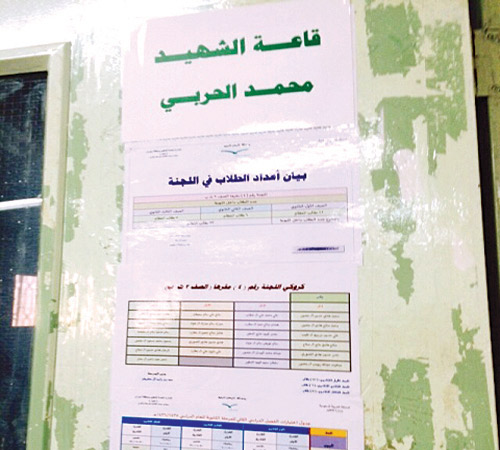 بادرت المدرسة الحدودية ثانوية محمد الفاتح بمحافظة خباش في نجران بتسمية قاعات الاختبار بأسماء شهداء عاصفة الحزم كجزء من الوفاء والتكريم لهؤلاء الأبطال الذين نذروا أنفسهم فداءً لدينهم ومليكهم ووطنهم. وأوضح قائد المدرسة حمد آل سليمان أن الفكرة جاءت كرد للجميل لهؤلاء الجنود البواسل الذين يقفون صفا واحدا لحماية حدود الوطن وما هذه الخطوة إلا شيء بسيط يمكن تقديمه لشهدائنا الأبرار الذين نسأل الله أن يسكنهم الجنة ويلهم ذويهم الصبر والسلوان وأن يجعل النصر حليف جيشنا وقيادتنا الرشيدة.