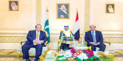 استقبل فخامة الرئيس عبدربه منصور هادي رئيس الجمهورية اليمنية في مقر إقامته بالرياض أمس دولة رئيس وزراء جمهورية باكستان الإسلامية محمد نواز شريف وصاحب السمو الملكي الأمير محمد بن سلمان بن عبدالعزيز وزير الدفاع رئيس الديوان الملكي المستشار الخاص لخادم الحرمين الشريفين.