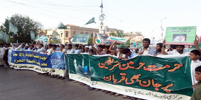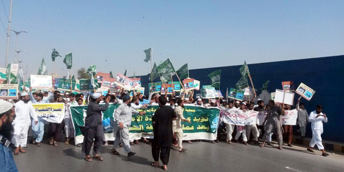نظّمت حملة الدفاع عن بلاد الحرمين الشريفين في باكستان أمس مسيرة حاشدة في مدينة كراتشي عاصمة إقليم السند للترحيب بنجاح عملية «عاصفة الحزم» وتأييد عملية «إعادة الأمل» والوقوف مع المملكة العربية السعودية لتأييد وقوفها مع الشعب اليمني الشقيق ضد التمرد الحوثي بطلب من الرئيس الشرعي في اليمن عبدربه منصور هادي.