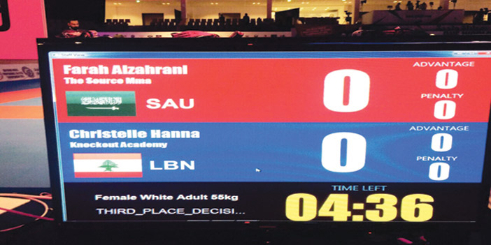 وعبرت المشاركة السعودية فرح الزهراني عن فرحتها بهذا الإنجاز الذي أهدته لوطنها ولمن شاركها الفرحة بهذا الانتصار المهم.. وقالت: هذه رياضة العقل والسمو والدفاع عن النفس مهما كان المعتدي وقد آن للفتاة السعودية أن تدافع عن نفسها أولا وعن أهلها مما يعني أنها تدافع عن وطنها.