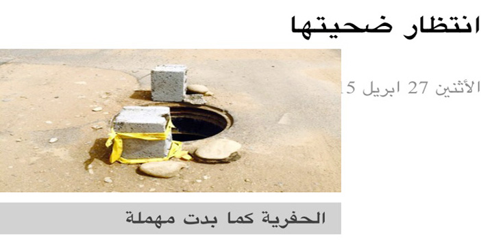 في تجاوب سريع لما نشرته صحيفة (الجزيرة) في عددها أمس الأول رقم: (15551) تحت عنوان: «حفرية للصرف الصحي بضمد في انتظار ضحيتها»، قام الدفاع المدني بالمحافظة بالتوجه إلى موقع الحفرية حيث قاموا بعمل حاجز مؤقت وشريط كامل على موقع الحفرية، وذلك لما تشكله من خطورة على المارة.