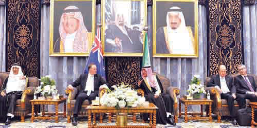 أقام صاحب السمو الملكي الأمير مقرن بن عبدالعزيز آل سعود ولي العهد نائب رئيس مجلس الوزراء - حفظه الله - في قصر سموه بالرياض مساء أمس مأدبة عشاء تكريمًا لدولة رئيس وزراء نيوزيلندا جون كي، والوفد المرافق له. وقبيل المأدبة صافح دولة رئيس وزراء نيوزيلندا أصحاب السمو الملكي الأمراء وأصحاب المعالي وكبار المسئولين، فيما صافح سمو ولي العهد الوفد الرسمي المرافق لدولته. حضر مأدبة العشاء صاحب السمو الأمير خالد بن فهد بن خالد، وصاحب السمو الملكي الأمير فيصل بن بندر بن عبدالعزيز أمير منطقه الرياض، وصاحب السمو الملكي الأمير منصور بن سعود بن عبدالعزيز، وصاحب السمو الملكي الأمير سعود بن سعد بن عبدالعزيز، وصاحب السمو الملكي الأمير نايف بن سعود بن عبدالعزيز، وصاحب السمو الأمير تركي بن محمد بن سعود الكبير وكيل وزارة الخارجية للعلاقات متعددة الأطراف، وصاحب السمو الأمير الدكتور عبدالرحمن بن محمد بن سعود الكبير، وصاحب السمو الملكي الأمير منصور بن متعب بن عبدالعزيز وزير الدولة عضو مجلس الوزراء مستشار خادم الحرمين الشريفين، وصاحب السمو الأمير خالد بن سعد بن فهد، وصاحب السمو الأمير عبدالله بن فيصل بن تركي وصاحب السمو الملكي الأمير خالد بن بندر بن عبدالعزيز مستشار خادم الحرمين الشريفين وصاحب السمو الملكي الأمير متعب بن عبدالله بن عبدالعزيز وزير الحرس الوطني، وعدد من أصحاب السمو الملكي الأمراء وأصحاب المعالي الوزراء وكبار المسؤولين من مدنيين وعسكريين والوفد الرسمي المرافق لدولة رئيس وزراء نيوزيلندا.