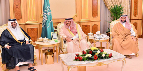 كما استقبل صاحب السمو الملكي الأمير محمد بن نايف بن عبدالعزيز ولي العهد نائب رئيس مجلس الوزراء وزير الداخلية -حفظه الله-، وصاحب السمو الملكي الأمير محمد بن سلمان بن عبدالعزيز ولي ولي العهد النائب الثاني لرئيس مجلس الوزراء وزير الدفاع بقصر اليمامة أمس سمو الشيخ عبدالله بن حمد آل ثاني نائب أمير دولة قطر يرافقه معالي الشيخ عبدالله بن ناصر بن خليفة آل ثاني رئيس مجلس الوزراء وزير الداخلية، ووزير الدولة لشؤون الدفاع اللواء ركن حمد بن علي العطية.