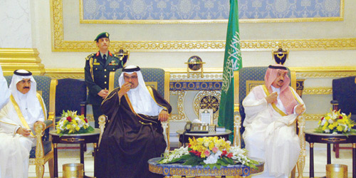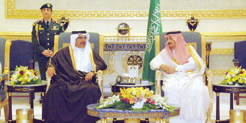 استقبل صاحب السمو الملكي الأمير محمد بن نايف بن عبدالعزيز ولي العهد نائب رئيس مجلس الوزراء وزير الداخلية، وصاحب السمو الملكي الأمير محمد بن سلمان بن عبدالعزيز ولي ولي العهد النائب الثاني لرئيس مجلس الوزراء وزير الدفاع -حفظهما الله- بقصر اليمامة أمس صاحب السمو الملكي الأمير سلمان بن حمد آل خليفة ولي العهد نائب القائد الأعلى النائب الأول لرئيس مجلس الوزراء بمملكة البحرين والوفد المرافق له.