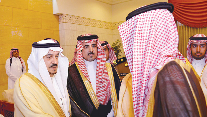 بناء على الأمر السامي الكريم القاضي باختيار صاحب السمو الملكي الأمير محمد بن نايف بن عبدالعزيز ولياً للعهد وتعيينه نائباً لرئيس مجلس الوزراء وزيراً للداخلية ورئيساً لمجلس الشؤون السياسية والأمنية، واختيار صاحب السمو الملكي الأمير محمد بن سلمان بن عبدالعزيز ولياً لولي العهد وتعيينه نائباً ثانياً لرئيس مجلس الوزراء وزيراً للدفاع ورئيساً لمجلس الشؤون الاقتصادية والتنمية، وبناءً على توجيه سمو ولي العهد نائب رئيس مجلس الوزراء وزير الداخلية تلقى البيعة نيابة عن سموه وسمو ولي ولي العهد صاحب السمو الملكي الأمير فيصل بن بندر بن عبدالعزيز أمير منطقة الرياض بقصر الحكم أمس من أصحاب الفضيلة العلماء وأصحاب المعالي وكبار المسؤولين المدنيين والعسكريين وجمع من المواطنين، داعين الله العلي القدير التوفيق والسداد لهما لخدمة الدين ثم المليك والوطن.