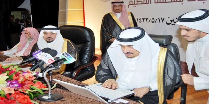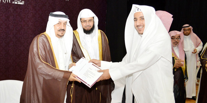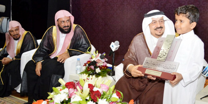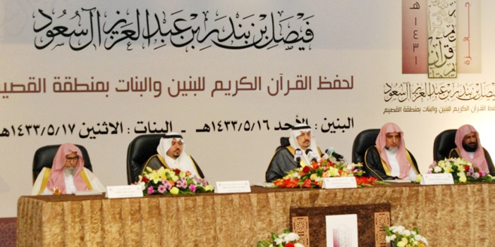 وجائزة فيصل بن بندر بن عبد العزيز آل سعود لحفظ القرآن الكريم للبنين والبنات بمنطقة القصيم.. هذه الجائزة المباركة أسسها ودعمها مشكوراً مأجوراً صاحب السمو الملكي الأمير فيصل بن بندر بن عبد العزيز آل سعود أمير منطقة الرياض لمدة أربع سنوات متتالية؛ فأهّلت وحفزت شبابنا وشاباتنا للتنافس في حفظ القرآن الكريم؛ فجزاه الله خيراً، وجعل ذلك في موازين حسناته. وهذا الإنفاق مخلوف عليه بإذن الله - عز وجل - وهو القائل سبحانه {وما أنفقتم من شيء فهو يخلفه وهو خير الرازقين}، والقائل جل وعلا {وما تقدموا لأنفسكم من خير تجدوه عند الله هو خيراً وأعظم أجراً}. ونحن في مساء هذا اليوم نشرف برعاية صاحب السمو الملكي الأمير الدكتور فيصل بن مشعل بن سعود بن عبد العزيز أمير منطقة القصيم للحفل الختامي لتكريم الفائزين بالجائزة في دورتها الرابعة لعام 1436هـ. وقد بلغ المتنافسون فيها أكثر من أربعين ألف طالب وطالبة من طلاب وطالبات جمعيات تحفيظ القرآن الكريم والتعليم العام والجامعي بمنطقة القصيم. ونثمن عالياً لسموه الكريم رعايته للحفل، وهو ما عودنا عليه دائماً.