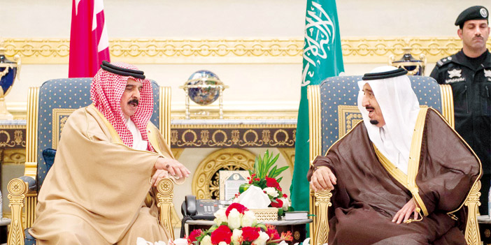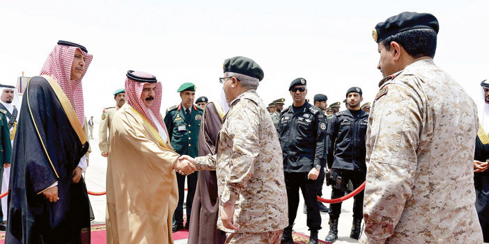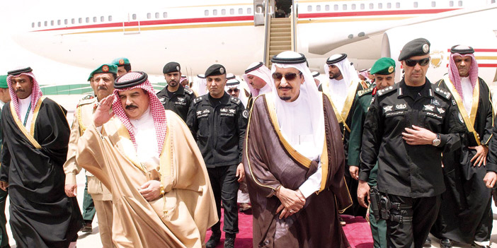ووصل جلالة الملك حمد بن عيسى آل خليفة ملك مملكة البحرين، وكان في استقبال جلالته بمطار قاعدة الرياض الجوية أخوه خادم الحرمين الشريفين الملك سلمان بن عبدالعزيز آل سعود، الذي رحب به وبمرافقيه في المملكة العربية السعودية. كما كان في استقباله صاحب السمو الملكي الأمير فيصل بن بندر بن عبدالعزيز أمير منطقة الرياض، وصاحب السمو الملكي الأمير محمد بن نايف بن عبدالعزيز ولي العهد نائب رئيس مجلس الوزراء وزير الداخلية، ومعالي وزير التجارة والصناعة الدكتور توفيق بن فوزان الربيعة الوزير المرافق، ومعالي الأمين العام لمجلس التعاون لدول الخليج العربية الدكتور عبداللطيف بن راشد الزياني, ومعالي رئيس المراسم الملكية الأستاذ خالد بن صالح العباد، ومعالي أمين منطقة الرياض المهندس إبراهيم بن محمد السلطان، والشيخ حمود بن عبدالله آل خليفة سفير مملكة البحرين لدى المملكة. بعد ذلك صافح جلالته مستقبليه، صاحب السمو الملكي الأمير خالد بن بندر بن عبدالعزيز مستشار خادم الحرمين الشريفين، وصاحب السمو الملكي الأمير الدكتور منصور بن متعب بن عبدالعزيز وزير الدولة عضو مجلس الوزراء مستشار خادم الحرمين الشريفين، وصاحب السمو الملكي الأمير متعب بن عبدالله بن عبدالعزيز وزير الحرس الوطني، وصاحب السمو الأمير الدكتور مشعل بن عبدالله بن مساعد مستشار خادم الحرمين الشريفين، وصاحب السمو الملكي الأمير عبدالعزيز بن سلمان بن عبدالعزيز نائب وزير البترول والثروة المعدنية، وصاحب السمو الملكي الأمير منصور بن مقرن بن عبدالعزيز مستشار خادم الحرمين الشريفين، ومعالي رئيس مجلس الشورى، وأصحاب المعالي الوزراء وكبار المسؤولين من مدنيين وعسكريين. وبعد استراحة قصيرة في صالة التشريفات غادر جلالة الملك حمد بن عيسى آل خليفة في موكب رسمي إلى قصر الدرعية. ويضم الوفد الرسمي المرافق لجلالة ملك البحرين سمو الشيخ ناصر بن حمد آل خليفة وسمو الشيخ خالد بن حمد آل خليفة وسمو الشيخ محمد بن مبارك بن حمد آل خليفة نائب رئيس مجلس الوزراء ومعالي الشيخ خالد بن أحمد بن سلمان آل خليفة وزير الديوان الملكي ومعالي الشيخ خالد بن أحمد بن محمد آل خليفة وزير الخارجية والشيخ حمود بن عبدالله آل خليفة سفير مملكة البحرين لدى المملكة.