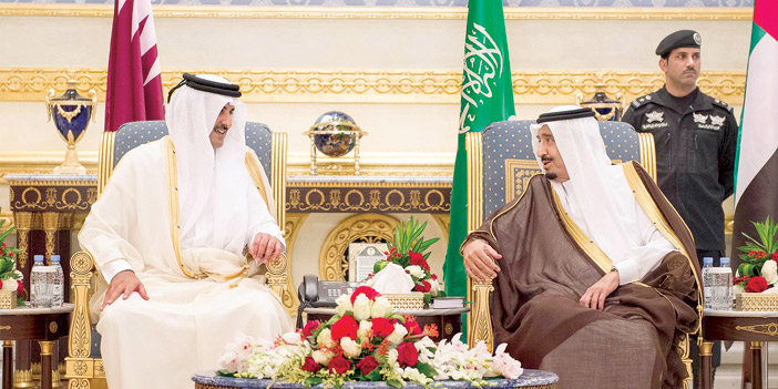 كما وصل صاحب السمو الشيخ تميم بن حمد بن خليفة آل ثاني أمير دولة قطر، وكان في استقبال سموه بمطار قاعدة الرياض الجوية أخوه خادم الحرمين الشريفين الملك سلمان بن عبدالعزيز آل سعود، الذي رحب به وبمرافقيه في المملكة العربية السعودية. كما كان في استقباله صاحب السمو الملكي الأمير فيصل بن بندر بن عبدالعزيز أمير منطقة الرياض، وصاحب السمو الملكي الأمير محمد بن نايف بن عبدالعزيز ولي العهد نائب رئيس مجلس الوزراء وزير الداخلية، ومعالي وزير الشؤون الاجتماعية الدكتور ماجد بن عبدالله القصبي الوزير المرافق، ومعالي الأمين العام لمجلس التعاون لدول الخليج العربية الدكتور عبداللطيف بن راشد الزياني, ومعالي رئيس المراسم الملكية الأستاذ خالد بن صالح العباد، ومعالي أمين منطقة الرياض المهندس إبراهيم بن محمد السلطان، والشيخ عبدالله بن ثامر آل ثاني سفير دولة قطر لدى المملكة. بعد ذلك صافح سمو أمير دولة قطر مستقبليه، صاحب السمو الملكي الأمير خالد بن بندر بن عبدالعزيز مستشار خادم الحرمين الشريفين، وصاحب السمو الملكي الأمير الدكتور منصور بن متعب بن عبدالعزيز وزير الدولة عضو مجلس الوزراء مستشار خادم الحرمين الشريفين، وصاحب السمو الملكي الأمير متعب بن عبدالله بن عبدالعزيز وزير الحرس الوطني، وصاحب السمو الأمير الدكتور مشعل بن عبدالله بن مساعد مستشار خادم الحرمين الشريفين، وصاحب السمو الملكي الأمير عبدالعزيز بن سلمان بن عبدالعزيز نائب وزير البترول والثروة المعدنية، وصاحب السمو الملكي الأمير منصور بن مقرن بن عبدالعزيز مستشار خادم الحرمين الشريفين، ومعالي رئيس مجلس الشورى، وأصحاب المعالي الوزراء وكبار المسؤولين من مدنيين وعسكريين. وبعد استراحة قصيرة في صالة التشريفات غادر صاحب السمو الشيخ تميم بن حمد بن خليفة آل ثاني في موكب رسمي إلى قصر الدرعية. ويضم الوفد الرسمي المرافق لسمو نائب رئيس دولة الإمارات سمو الشيخ الفريق سيف بن زايد آل نهيان نائب رئيس مجلس الوزراء وزير الداخلية، وسمو الشيخ طحنون بن زايد آل نهيان نائب مستشار الأمن الوطني، وسمو الشيخ عبدالله بن زايد آل نهيان وزير الخارجية، ومعالي وزير شؤون مجلس الوزراء محمد بن عبدالله القرقاوي، ومعالي وزير الدولة للشؤون الخارجية الدكتور أنور محمد قرقاش، والمدير العام لدائرة التشريفات والضيافة بدبي خليفة سعيد سليمان، وسفير دولالإمارات لدى المملكة محمد سعيد الظاهري.