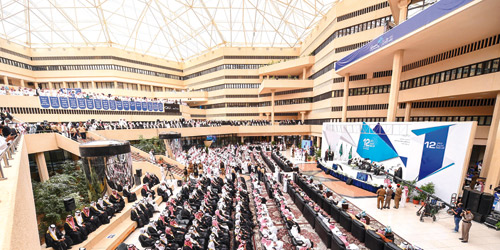 كما أننا نفخر بتخريج (118) من خريجي وخريجات مرحلة الدراسات العليا سبعة منهم حصلوا على درجة الدكتوراه ولله الحمد, كما ستحتفل الجامعة - مساء هذا اليوم الخميس - بإذن الله - بتخريج (5333) خريجة في حفل خاص بهن ليكون مجموع خريجي الجامعة لهذا العام (8358) خريجاً وخريجة.