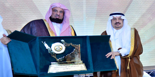 عقب ذلك تسلم سمو أمير منطقة الرياض درعاً تذكارياً من معالي الدكتور السند، ثم قام سموه بتكريم الجهات المشاركة، وهي جامعة الإمام محمد بن سعود الإسلامية، وجامعة الأميرة نورة بنت عبدالرحمن، وجامعة الدمام، وجامعة الملك عبدالعزيز، وجامعة الملك خالد، ومركز الملك عبدالعزيز التاريخي.