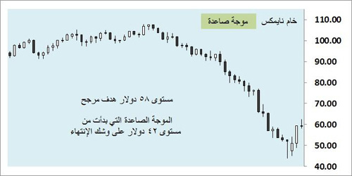 تمكَّن خام نايمكس الأسبوع الماضي من إضافة قمة سنوية جديدة عند مستوى 62.5 دولار داخل نمط متوازن، والموجة الصاعدة التي بدأت من مستوى 42 دولاراً تعاني من ضعف في المنطقة بين 58 و62 دولاراً. ويتوقع أن يدخل نايمكس منطقة حيرة رغم هبوط العملة الخضراء من 100 إلى 94 أمام سلة عملاتها، إلا أن شهية المخاطرة لدى المضاربين تراجعت، ويرجح أن يهبط نايمكس إلى مستوى 58 دولاراً الأسبوع المقبل كحد أدنى.