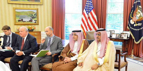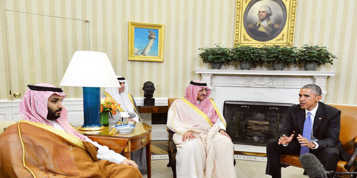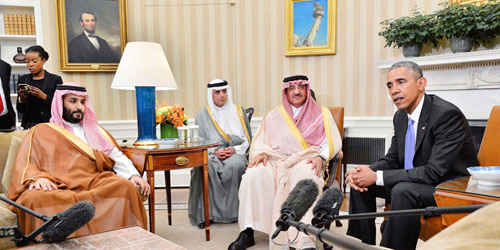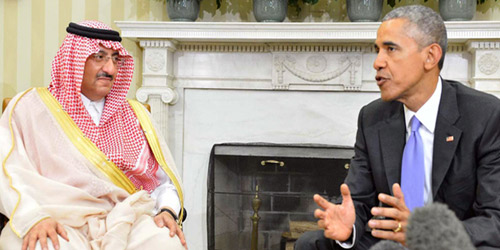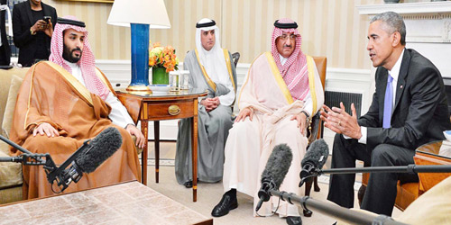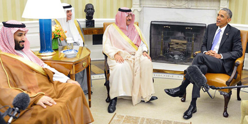 التقى صاحب السمو الملكي الأمير محمد بن نايف بن عبدالعزيز ولي العهد نائب رئيس مجلس الوزراء وزير الداخلية بحضور صاحب السمو الملكي الأمير محمد بن سلمان بن عبدالعزيز ولي ولي العهد النائب الثاني لرئيس مجلس الوزراء وزير الدفاع -حفظهما الله- أمس فخامة الرئيس باراك أوباما رئيس الولايات المتحدة الأمريكية، في مقر البيت الأبيض بواشنطن.