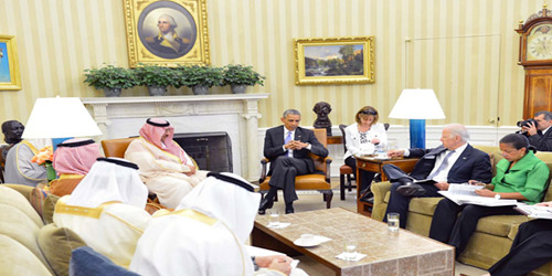 في بداية اللقاء رحب فخامة الرئيس باراك أوباما بسمو ولي العهد، وسمو ولي ولي العهد، مؤكدًا أهمية هذا اللقاء الذي يسبق اجتماع قادة دول مجلس التعاون الخليجي مع فخامته في كامب ديفيد، لبحث العلاقات بين البلدين الصديقين، إلى جانب بحث أزمة اليمن وهدنة وقف إطلاق النار، والوقوف مع الحكومة الشرعية في اليمن، علاوة على إسهامات المملكة في التصدي لتنظيم داعش الإرهابي، وبحث ملفات الأزمة في العراق وسوريا، التي ستناقش بشكل أوسع في الاجتماع المرتقب اليوم الخميس.