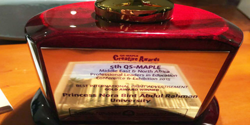 شاركت جامعة الأميرة نورة بنت عبدالرحمن بمعرض ومؤتمر التصنيف العالمي QS الخامس لدول قارة آسيا، بعنوان «الابتكار والتعاون العالمي في مجال التعليم العالمي» والمنعقد بجامعة قطر بالدوحة، وحصلت على الجائزة الذهبية في مسابقة أفضل مطبوع دعائي على مستوى المطبوعات المشاركة من قبل الجامعات الآسيوية