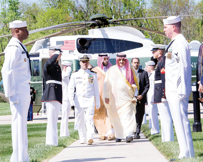 حظي صاحب السمو الملكي الأمير محمد بن نايف بن عبدالعزيز ولي العهد نائب رئيس مجلس الوزراء وزير الداخلية وصاحب السمو الملكي الأمير محمد بن سلمان بن عبدالعزيز ولي ولي العهد النائب الثاني لرئيس مجلس الوزراء وزير الدفاع باستقبال حافل من فخامة الرئيس الأمريكي باراك أوباما في «كامب ديفيد»، سبقه استقبال لا يقل حفاوة في البيت الأبيض في العاصمة واشنطن.