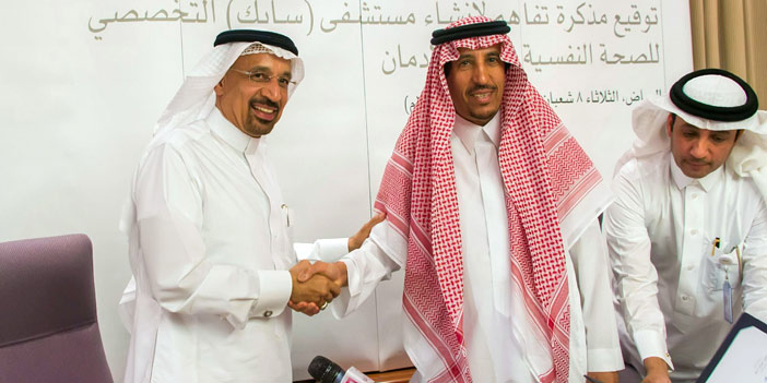وقع المذكرة عن (سابك) صاحب السمو الأمير سعود بن عبدالله بن ثنيان رئيس الهيئة الملكية للجبيل وينبع رئيس مجلس إدارة (سابك)، فيما وقعها عن وزارة الصحة المهندس خالد الفالح وزير الصحة, بحضور نائب رئيس مجلس إدارة (سابك) الرئيس التنفيذي يوسف البنيان، وعدد من قيادات الشركة، ومسؤولي الوزارة. وبموجب مذكرة التفاهم، تتكفل (سابك) بتمويل تكاليف الدراسات والتصاميم والإنشاء والتجهيز بقيمة 300 مليون ريال؛ لتقديم خدمات صحية متخصصة فيما يتعلق بالصحة النفسية وعلاج الإدمان، ما يساعد في توفير خدمات صحية نوعية للمصابين بالأمراض النفسية والإدمان، ويعزز من عزمهم وإصرارهم على التعافي من تلك الأمراض والمخدرات.