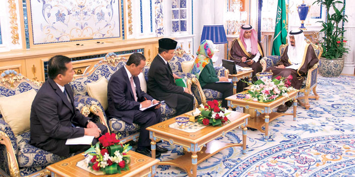 استقبل خادم الحرمين الشريفين- حفظه الله - في مكتبه بقصر السلام أمس، معالي وزيرة خارجية جمهورية اندونيسيا ريتنو مرسودي، والوفد المرافق لها. ونقلت معاليها لخادم الحرمين الشريفين تحيات وتقدير فخامة الرئيس جوكو ويدودو رئيس جمهورية اندونيسيا، فيما أبدى - أيده الله - تحياته وتقديره لفخامته. وجرى خلال الاستقبال استعراض عدد من الموضوعات ذات الاهتمام المشترك، وأوجه التعاون بين البلدين. حضر الاستقبال وزير الدولة عضو مجلس الوزراء الدكتور مساعد بن محمد العيبان، ووزير الثقافة والإعلام الدكتور عادل بن زيد الطريفي، ووزير الخارجية الأستاذ عادل بن أحمد الجبير، والقائم بأعمال السفارة الاندونيسية لدى المملكة سوناركو.