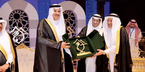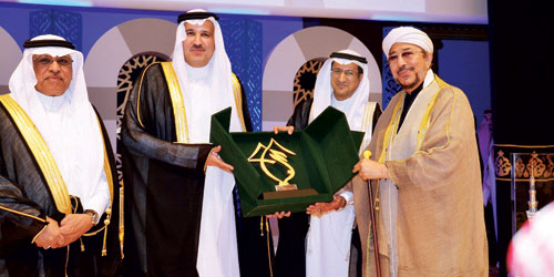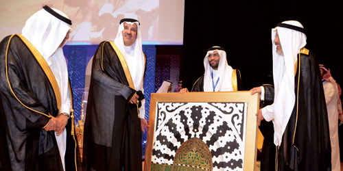 ثم كرّم صاحب السمو الملكي الأمير فيصل بن سلمان بن عبدالعزيز أمير منطقة المدينة المنورة، عمداء المعهد السابقين اللذين أسهموا في تطويره علمياً وبحثياً لتحقيق أهدافه، كما تسلّم سموه درعاً تذكارياً بهذه المناسبة.