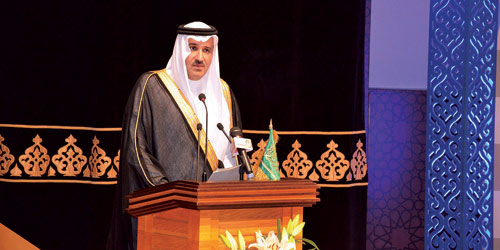 وتلا سمو أمير منطقة المدينة المنورة، كلمة سمو ولي العهد التي وجهها للمشاركين في أعمال الملتقى العلمي الخامس عشر لأبحاث الحج والعمرة والزيارة، التي قال فيها: «لقد شرف الله هذه البلاد المباركة قيادة وشعباً بخدمة الحرمين الشريفين ورعاية قاصديهما من الحجاج والزوار والمعتمرين ويقين هذا الشرف والاعتزاز أن اللقب الذي أحبه وتشرف بحمله قادة هذه البلاد لقب « خادم الحرمين الشريفين».