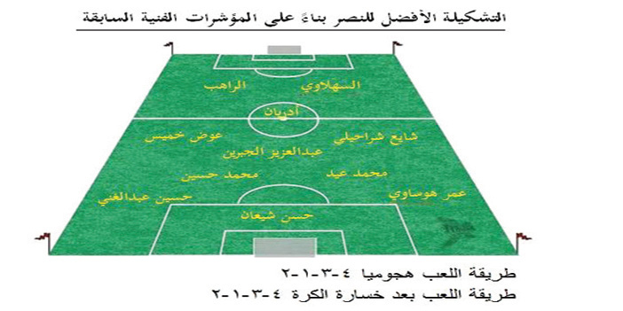 فنياً: اللعب من لمسة واحدة أو لمستين على الأكثر منعاً لخسارة الكرة من خلال الضغط المتوقع على حاملها + استغلال أطراف الهلال خاصة في أحيان كثيرة الطرفين تكون متاحة بسبب خروج الشهراني والزوري في وقت واحد + تحديد ادوار واضحة للاعبي الأطراف أو احد الهاجمين بالمساندة الدفاعية بعد خسارة الكرة خاصة في أطراف وسط الملعب + البحث عن السهلاوي لا يكون بشكل مستمر ومتكرر.