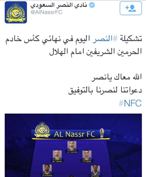 استغرب عدد كبير من المغردين عدم تفاعل الحساب الرسمي لنادي النصر وقت مباراة نهائي كأس الملك للأبطال لكونه لم يتطرق لنتيجة المباراة وأحداثها إطلاقاً بل اكتفى بـ3 تغريدات بسيطة لم تواكب الحدث الكبير، وعلى الجانب الآخر تفوق حساب نادي الهلال الرسمي باللغتين العربية والانجليزية نظير متابعته المتجددة لمجريات اللقاء وتزويده المتابعين بكل أحداث المباراة بمهنية وشفافية عالية إن دلت فهي تدل على ثقة كبيرة بالرغم من تقدم النصر حتى آخر دقيقتين قبل أن يلحق الزعيم بالمباراة، كذلك إسناد مهمة إدارة الحساب لكفاءات متخصصة أثبتت جداراتها بتفوقها منذ بدء عمل الحساب الفترة الماضية.