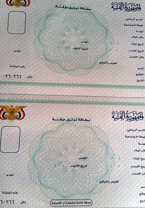 وأضاف العواقي أن من أهم مميزات هذه الوثيقة أنها تسمح له بالعمل داخل المملكة والتي تعطى عن طريق الجوازات السعودية كما أننا نطلب اثنين معرّفين لمن لا يحمل أي وثيقة، أما الجوازات السعودية فنطلب منه مستضيفاً سعودياً أو يمنياً يحمل إقامة نظامية.