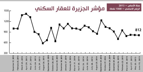 بضغط من المدن الكبرى في المملكة تراجع مؤشر الجزيرة للعقار السكني الأسبوع الماضي بنسبة 6.9 في المائة ليغلق عند مستويات 812 نقطة. وبالنظر إلى حركة المؤشر منذ بداية العام 2015 فقد انخفض بنسبة 11.4 في المائة، أما التغير منذ بداية عمل المؤشر فقد انخفض بنسبة 18.8 في المائة، أي أن التراجع في مؤشر العقار السكني أقل من الانخفاض في العقار العام، وكذلك مؤشر القطاع التجاري.