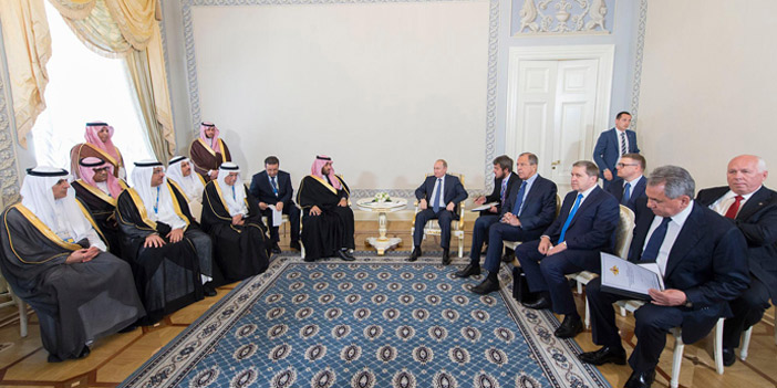 التقى فخامة الرئيس فلاديمير بوتين رئيس روسيا الاتحادية في سانت بترسبيرغ أمس صاحب السمو الملكي الأمير محمد بن سلمان بن عبدالعزيز ولي ولي العهد النائب الثاني لرئيس مجلس الوزراء وزير الدفاع رئيس مجلس الشؤون الاقتصادية والتنمية.