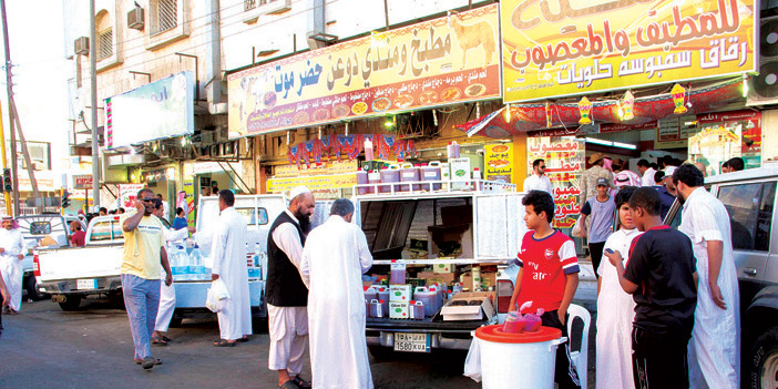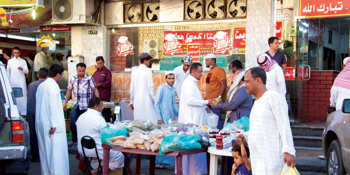 جدّد شهر رمضان المبارك حركة البيع والشراء في سوق «الخالدية» الشعبي بمنطقة تبوك, بعد توقف دام لأكثر من 330 يوماً، لاسيما وقد ارتبط هذا السوق بتقاليد الشهر الفضيل في كل عام. ويبدأ السوق نشاطه مع بداية الشهر الكريم، محققا دخلاً مادياً جيداً للباعة الذين يسارعون مع هذه البداية المباركة لإعداد الوجبات والمأكولات الشعبية، التي عرفت بها المنطقة، فيما يشهد السوق عقب صلاة العصر نشاطً من الزبائن الذين يحرصون على التبضع من المحال التي تقدم لهم من المأكولات، لتكون ضمن موائد إفطارهم اليومية. وقال أحد ملاك البسطات بالسوق خليل عبده الكعبي : إنه يعمل منذ 6 سنوات بشكل دوري مع مطلع الشهر الفضيل , عاداً السوق بأنه فرصة للقاء أهالي منطقة تبوك الذين اعتادوا فيه على تقديم الوجبات الشعبية الرمضانية، مبيناً أنه يقوم بإعداد مختلف الأكلات الرمضانية التي يفضلها الأهالي والزوار ويحرصون على تواجدها ضمن أصناف مائدتهم الرمضانية مثل المعجنات من اللقيمات، والهواري، والسمبوسة، والرقائق التي يدخل في صناعتها البيض والخضروات والأجبان, والحلويات بمختلف أصنافها.