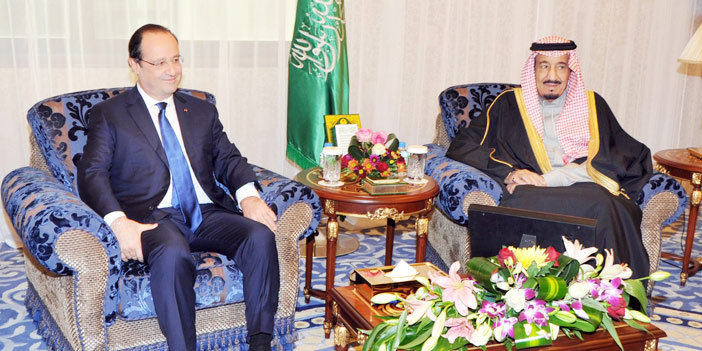 وفي ذي القعدة 1435هـ، الموافق سبتمبر 2014م، قام خادم الحرمين الشريفين الملك سلمان بن عبدالعزيز آل سعود -كان حينها ولياً للعهد وزيراً الدفاع- بزيارة رسمية للجمهورية الفرنسية تلبية لدعوة تلقاها من فخامة الرئيس فرانسوا هولاند رئيس الجمهورية الفرنسية.