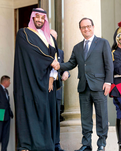 التقى فخامة الرئيس فرانسوا هولاند رئيس الجمهورية الفرنسية في قصر الإليزيه بالعاصمة الفرنسية، أمس، صاحب السمو الملكي الأمير محمد بن سلمان بن عبدالعزيز ولي ولي العهد النائب الثاني لرئيس مجلس الوزراء وزير الدفاع.