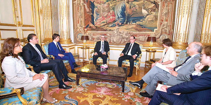 عقد فخامة الرئيس الفرنسي فرانسوا أولاند وصاحب السمو الملكي الأمير الوليد بن طلال بن عبدالعزيز آل سعود، رئيس مجلس إدارة شركة المملكة القابضة، اجتماعاً في قصر الإليزيه الرئاسي في العاصمة الفرنسية باريس.