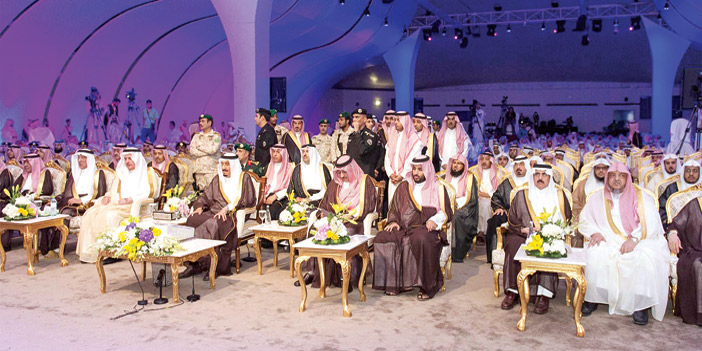 وبعد أن أخذ خادم الحرمين الشريفين مكانه في المنصة الرئيسة بدئ الحفل الخطابي المعد بهذه المناسبة بتلاوة آيات من القرآن الكريم.