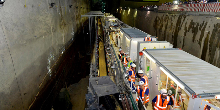 كما اطلع سموه على آلية تبطين جدار النفق وبناء جداره من حلقات القطع الخرسانية الجاهزة، التي يجري تصنيعها في سبعة مصانع جرى تشييدها خصيصاً للمشروع في مواقع مختلفة بمدينة الرياض لتلبية احتياجات المشروع من هذه الحلقات الخرسانية، وقطع الجسور.