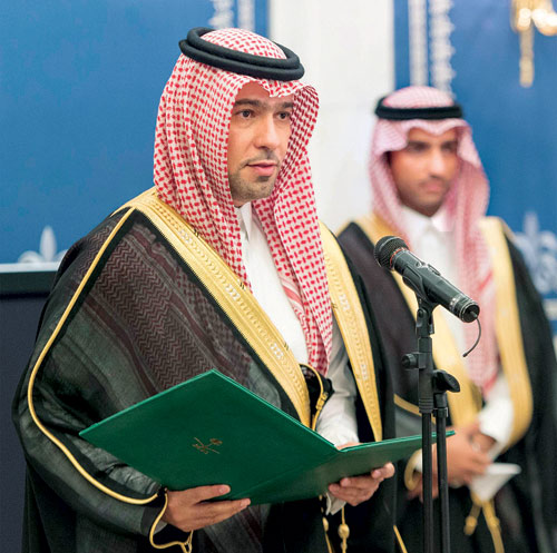 حضر أداء القسم صاحب السمو الملكي الأمير محمد بن نايف بن عبد العزيز ولي العهد نائب رئيس مجلس الوزراء وزير الداخلية، وصاحب السمو الملكي الأمير محمد بن سلمان بن عبد العزيز ولي ولي العهد النائب الثاني لرئيس مجلس الوزراء وزير الدفاع.