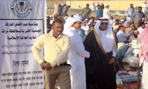 في بادرة هي الأولى من نوعها سطر مسئولو الجمعية الخيرية ومكتب توعية الجاليات بمحافظة مرات أروع الأمثلة في التكافل الاجتماعي والتواد الإنساني وقدموا رسالة سامية في الأخوة الإسلامية القائمة على المحبة والتعاضد والمشاركة من خلال إعداد وجبة عيد خاصة للمقيمين من الجاليات الإسلامية مع تقديم الهدايا العينية لهم، وذلك في أعقاب صلاة العيد مباشرة في مصلى العيدين.