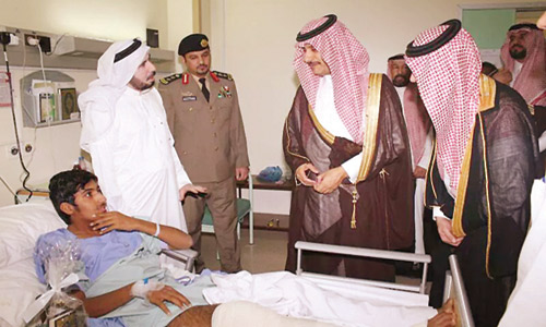 وسلم سموه لهم أثناء الزيارة هدية العيد وكان لهذه الزيارة أثرها الكبير في نفوس المرضى وذويهم وفي تصريح لـ(الجزيرة) التي رافقته في هذه الزيارة، قال سموه: يسعدني بمناسبة عيد الفطر المبارك أن أرفع بأسمى ونيابة عن أهالي محافظة المجمعة أطيب التهاني والتبريكات لمقام سيدي خادم الحرمين الشريفين ولسمو ولي العهد وسمو ولي ولي العهد والشعب السعودي، وقد سعدت اليوم بزيارة المرضى المنومين في المستشفى وطمأنينة على أحوالهم الصحية، داعيًا الله لهم بالشفاء العاجل وأن يكملوا بقية أيام العيد بين أهلهم.