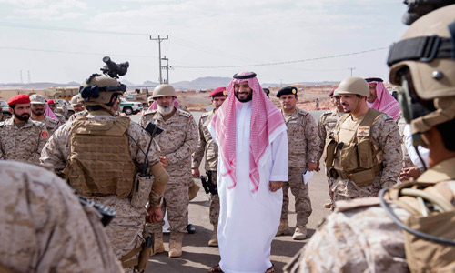 وتفقد الأمير محمد بن سلمان وحدة التدخل السريع على الحد الجنوبي التي تضم طواقم بشرية وآليات عسكرية بأحدث التقنيات التي تمكنها من أداء مهامها وتمنحها التفوق نحو الاستجابة السريعة مع تطورات الموقف.