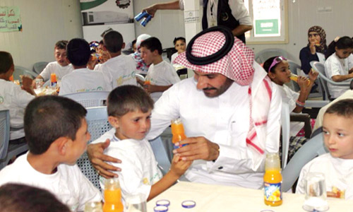 نظَّمت الحملة الوطنية السعودية لنصرة الأشقاء في سوريا فعالياتها الاحتفالية بعيد الفطر المبارك بعنوان «شقيقي بكم نفرح»، راسمة خلالها الفرح والبهجة على وجوه عشرات الأطفال من أبناء الأشقاء اللاجئين السوريين في مخيم الزعتري؛ إذ اشتملت الفعالية التي أُقيمت بأجواء من السعادة والفرح والمحبة على توزيع الهدايا والألعاب للأطفال بمناسبة العيد، وتنظيم عروض ترفيهية وأدبية واحتفالية، كما تم خلالها تخريج الطلبة المتفوقين والمميزين من المشاركين في النادي الصيفي الرمضاني الذي نظمته وحدة الدعم النفسي التابعة للعيادات التخصصية السعودية في مخيم الزعتري.