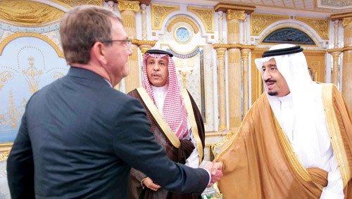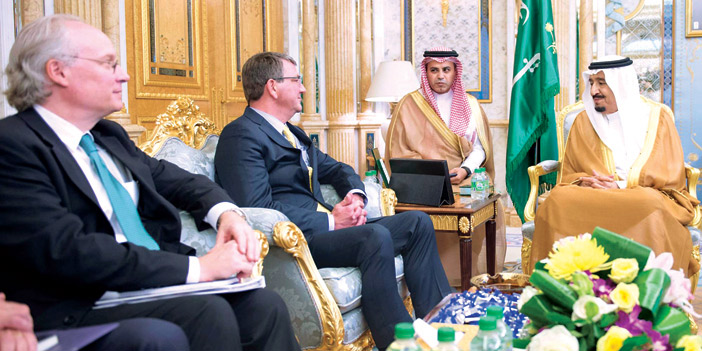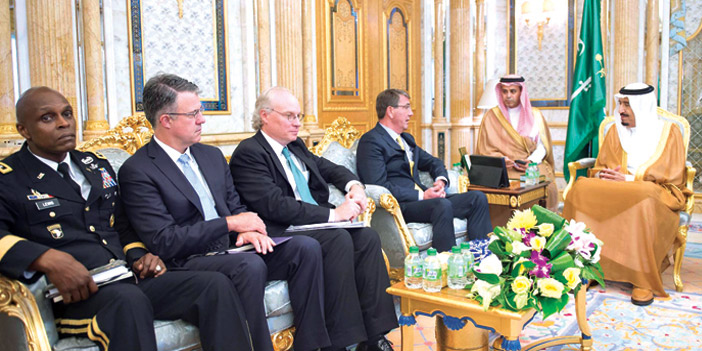 استقبل خادم الحرمين الشريفين الملك سلمان بن عبدالعزيز آل سعود في قصر السلام أمس معالي وزير الدفاع الأمريكي أشتون كارتر والوفد المرافق له.