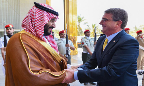 عقد صاحب السمو الملكي الأمير محمد بن سلمان بن عبدالعزيز ولي ولي العهد النائب الثاني لرئيس مجلس الوزراء وزير الدفاع في مكتبه بجدة أمس اجتماعاً ثنائياً مع معالي وزير الدفاع الأمريكي اشتون كارتر. وجرى خلال الاجتماع الثنائي مناقشة مجالات التعاون العسكري القائم بين البلدين.