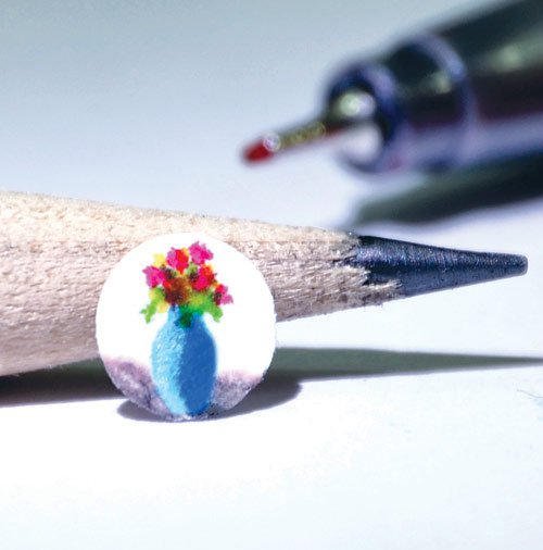 يطمح الفنان التشكيلي فيصل العتيبي دخول موسوعة جينيس بعمل تشكيلي يسجل به رقم قياسي بأصغر لوحة تشكيلية وضمها للموسوعة الدولية، حيث توصل في مرسمه المتواضع الصغير لرسم لوحات تشكيلية بلغ طولها 3 ملم وعرض 3 ملم.