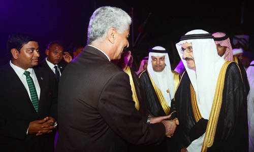 رأس صاحب السمو الملكي الأمير الدكتور منصور بن متعب بن عبدالعزيز وزير الدولة، عضو مجلس الوزراء، مستشار خادم الحرمين الشريفين وفد المملكة المشارك في احتفالات جمهورية المالديف بالذكرى الخمسين لاستقلالها, التي أقيمت بالعاصمة ماليه أمس بمشاركة وفود من مختلف دول العالم.