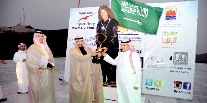 جاء ذلك خلال رعايته لختام بطولة عسير الدولية الرابعة للطيران الشراعي أمس الأول السبت، بحضور مدير عام الهيئة العامة للسياحة والتراث الوطني أمين عام مجلس التنمية السياحية بالمنطقة المهندس محمد العمرة. ويضم النادي: مدرج للجماهير، وشبك حماية للطيارين عند الإقلاع، ومبنى للإدارة وآخر لمرافق النادي. يشار إلى أن النجم العالمي التشيكي توماس ليدنك احتفظ بلقب البطولة للعام الثاني على التوالي، فيما حل السعوديان عالي الميموني وعلي الشمراني في المركزين الثاني والثالث.