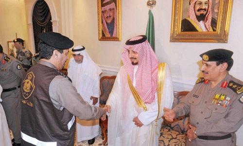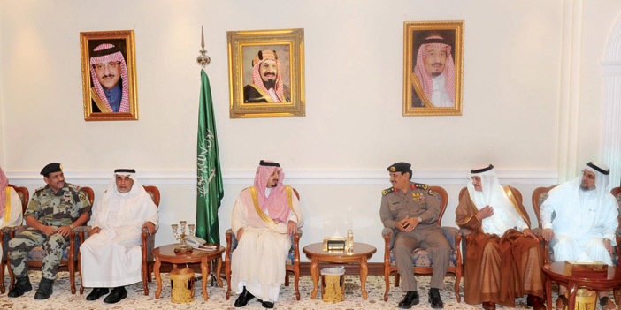 استقبل صاحب السمو الملكي الأمير فيصل بن خالد بن عبدالعزيز أمير منطقة عسير في مقر ضيافة الإمارة بحي السد بأبها أمس ، معالي مدير الأمن العام الفريق عثمان بن ناصر المحرج، والوفد المرافق له من مديري الإدارات الأمنية بالأمن العام. وأكد سموه في حديث له أثناء اللقاء أن رجال الأمن هم صمام الأمان للوقوف في وجه كل من يريد المساس بأمن هذا البلد, مثمنا سموه دور رجال الأمن في الحفاظ على الأمن والاستقرار.