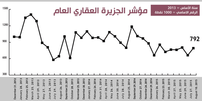 توضيح: مؤشر الجزيرة العقاري “هو أول مؤشر عقاري والوحيد على مستوى المملكة، حيث يقيس حركة النشاط في القطاع العقاري في المملكة بشكل أسبوعي للعقار العام (سكني وتجاري) وكذلك مؤشر للعقار السكني وآخر للتجاري وقد وضعنا “سنة الأساس للمؤشر 2013 وقيمة الأساس 1000 نقطة” لجميع المؤشرات، وأن هذا التقرير للمعلومة فقط ولا يحمل أي نصيحة أو توصية، حيث قمنا بعملية جمع بيانات هذا التقرير من مصادرها بحرص وعناية ومن ثم قمنا بعملية تحويلها إلى مؤشرات.